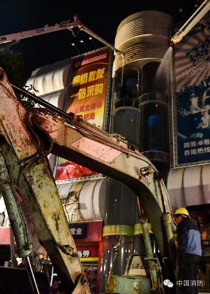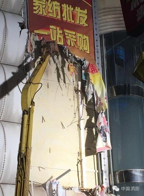 由于建筑的特殊性, 扑救火灾过程中,参战官兵多次利用工具破拆墙体,但受墙体和作业面限制无法奏效,由于火场荷载大,商场外立面大多为实体墙,排烟散热困难,且燃烧时间过长,存在坍塌危险,不具备内攻条件。官兵利用高喷车、移动水炮等实施控火降温,经过近20小时扑救,大火已被基本扑灭。同时,现场官兵打通救援通道,进入火场内部开展搜救。